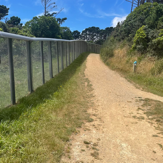 At the top of the 4WD track you hit the Zealandia fence which you follow until you cross the road again and are walking back in the bush.